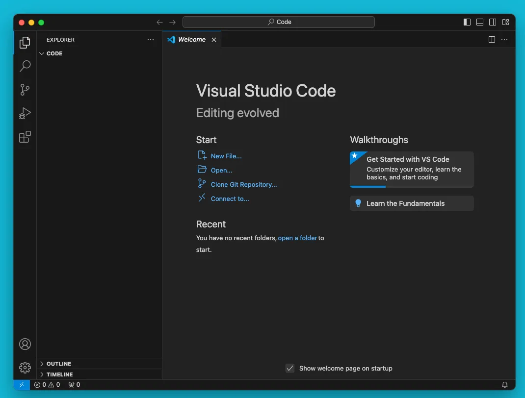 cd ~/Code && code .Here is the result: