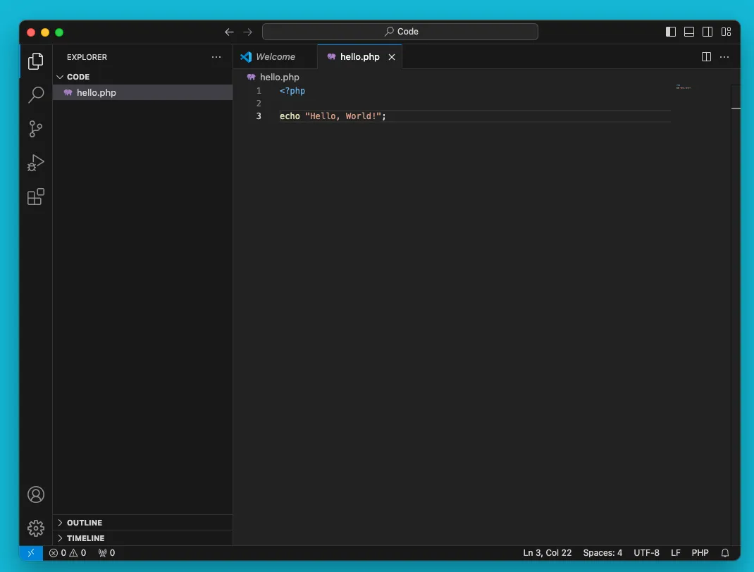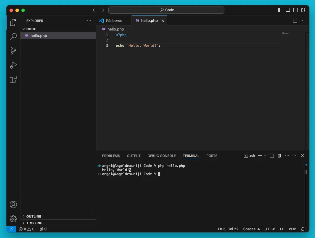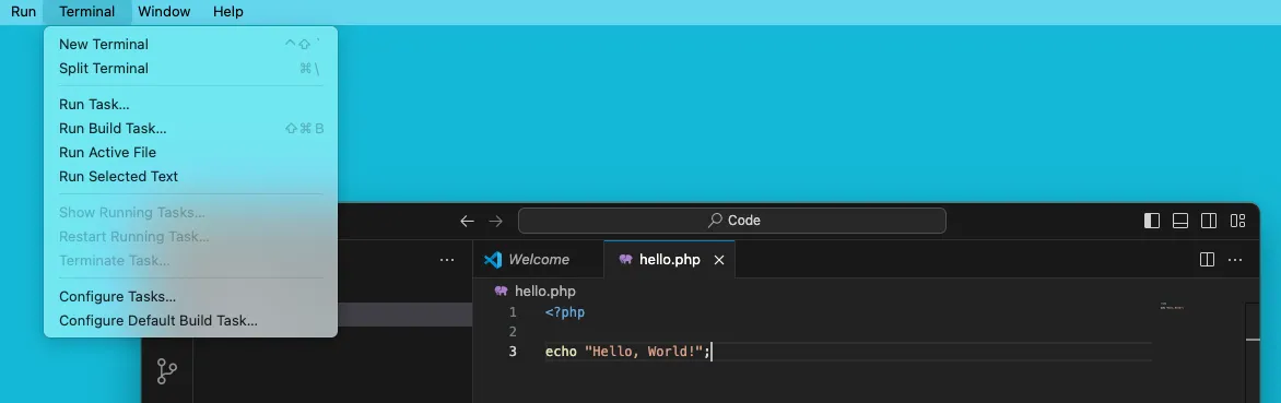 php hello.phpYou should see the output Hello, World!* in the Terminal.