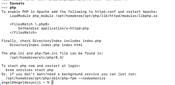 brew install phpAt the end of the installation process, you will see something like this: